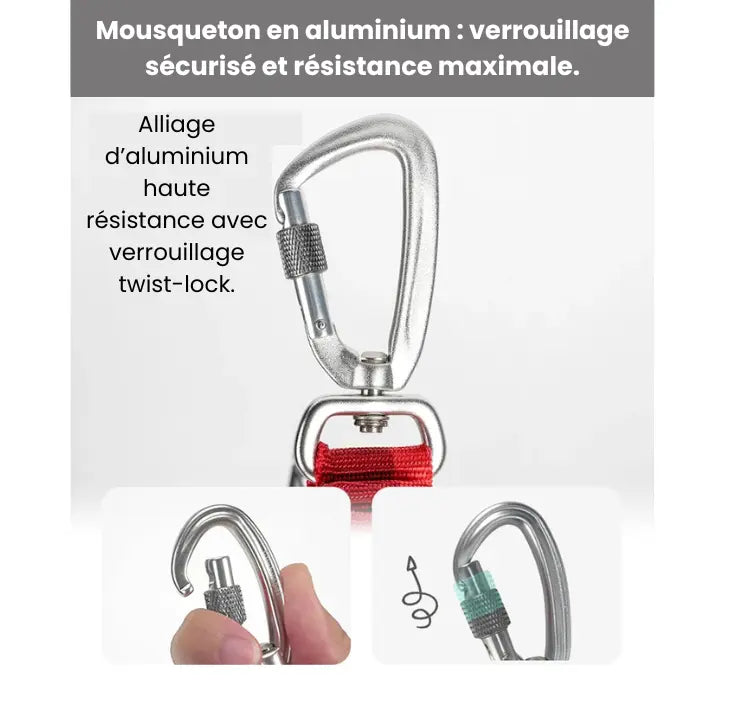 Ja, het heeft een snelvergrendelingssysteem met draaisluiting, geïnspireerd op klimuitrusting.
