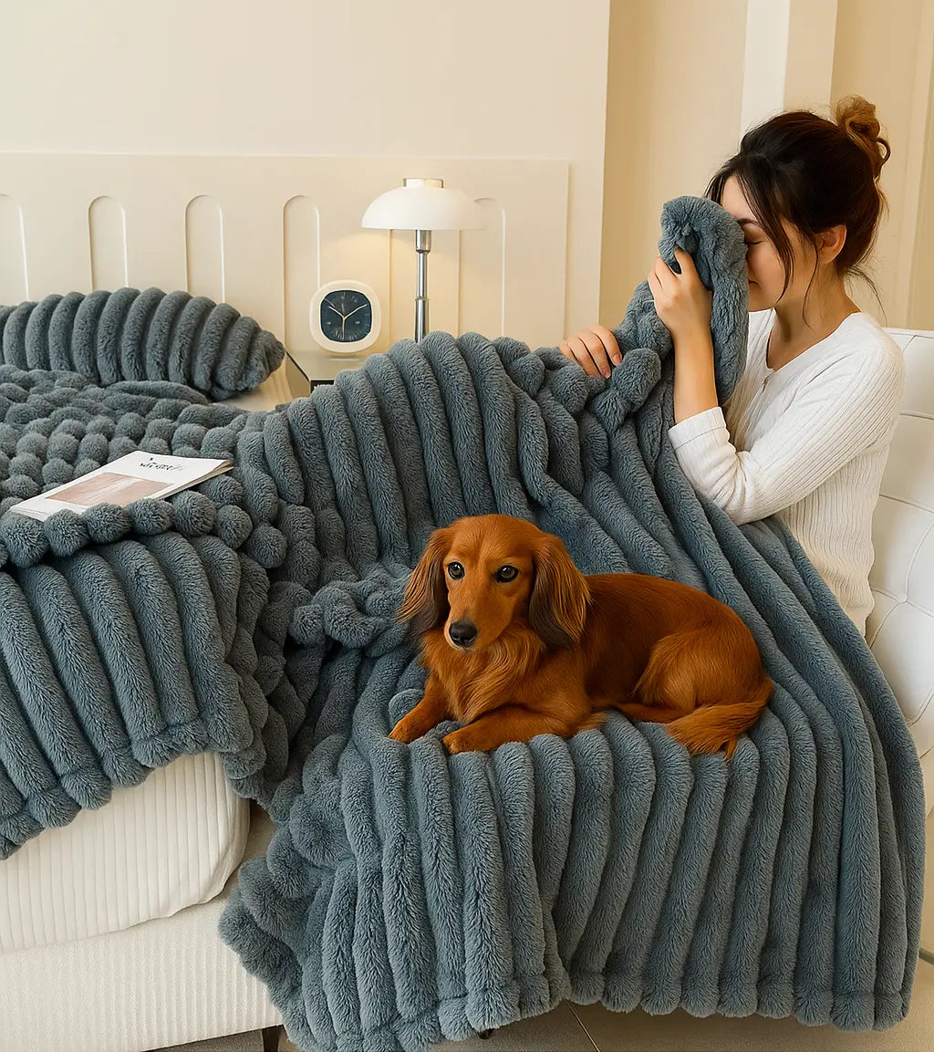 Een zachte cocon voor u en uw huisdieren. Comfort, warmte en rust verenigd in een plaid die zo zacht is als een knuffel.